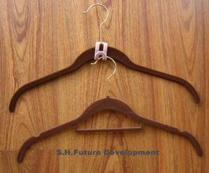 The inside hanger material is ABS and outside is to be flocked with various colors. To compare with the trdtional plastic hanger , it can save the customer's cabinet room and to match their different garments.